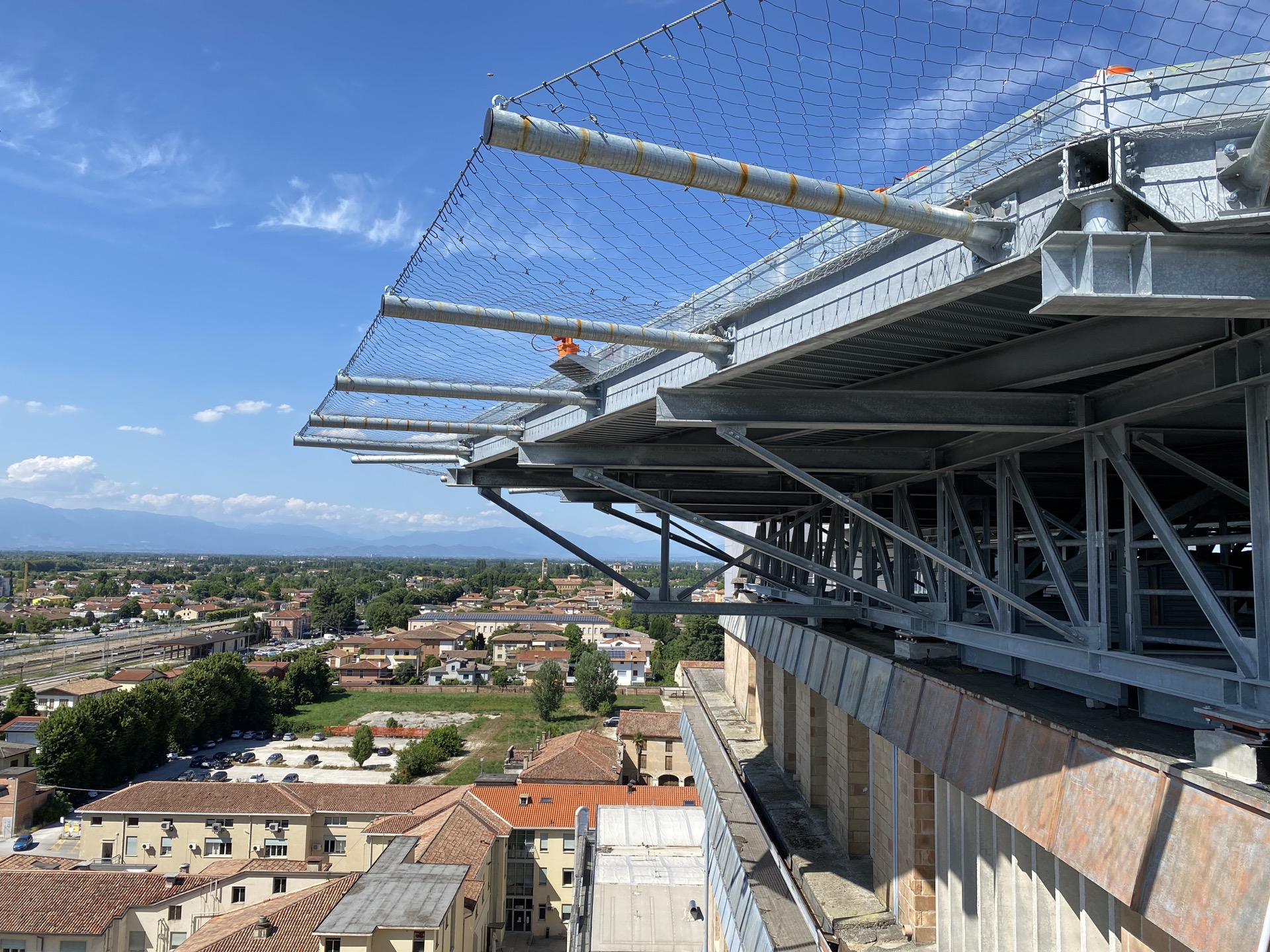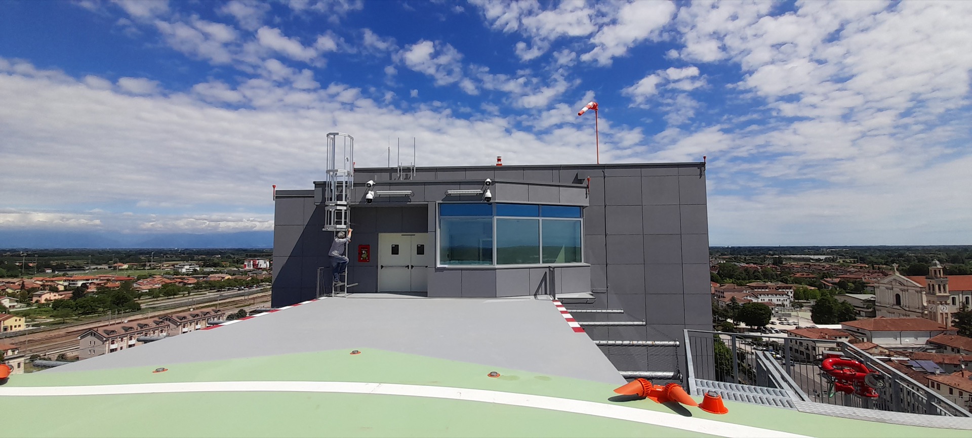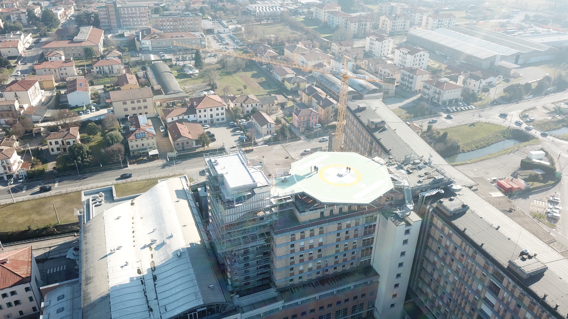 Abbiamo portato a termine non un semplice cantiere, ma una vera e propria sfida in volo. Un nuovo eliporto svetta ora sul tetto dell’Ospedale di Camposampiero (PD), a più di 40 metri d’altezza. La realizzazione ha richiesto soluzioni ingegneristiche ad hoc per rispettare le peculiari necessità strutturali e organizzative dettate dalla struttura ospedaliera.
